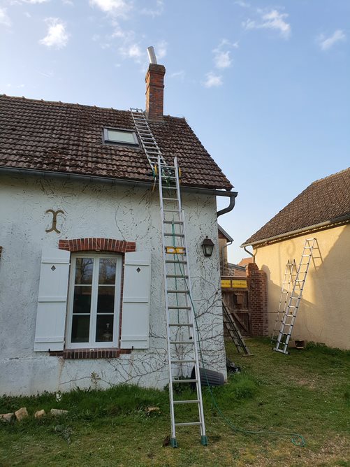 Démoussage de toiture, nettoyage d'allées, entretien et changement de gouttières PVC, changement de WC.